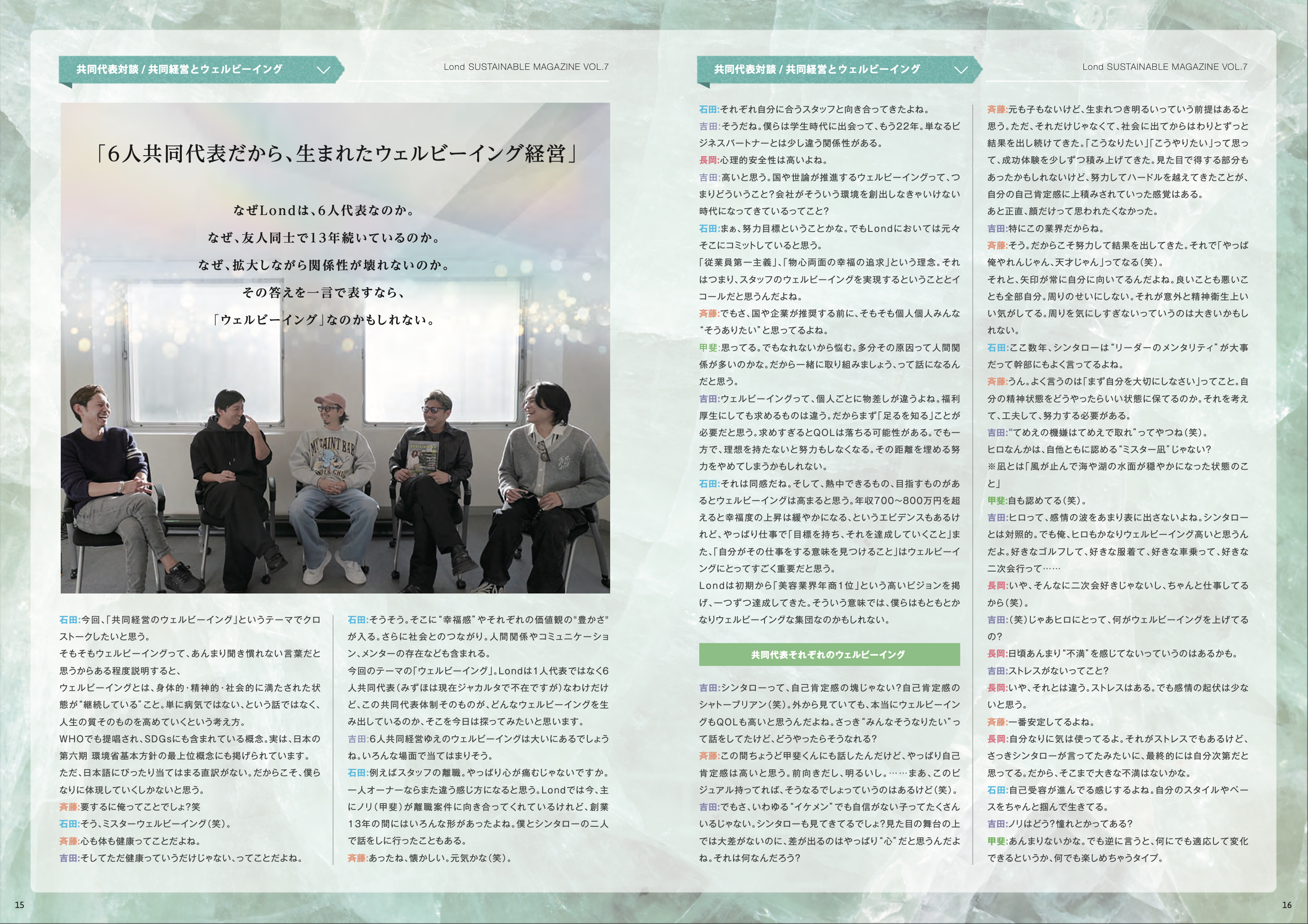 本誌では、その体制から生まれる価値観を通じて、「働くこと」とそれぞれのウェルビーイングについてクロストークしました。