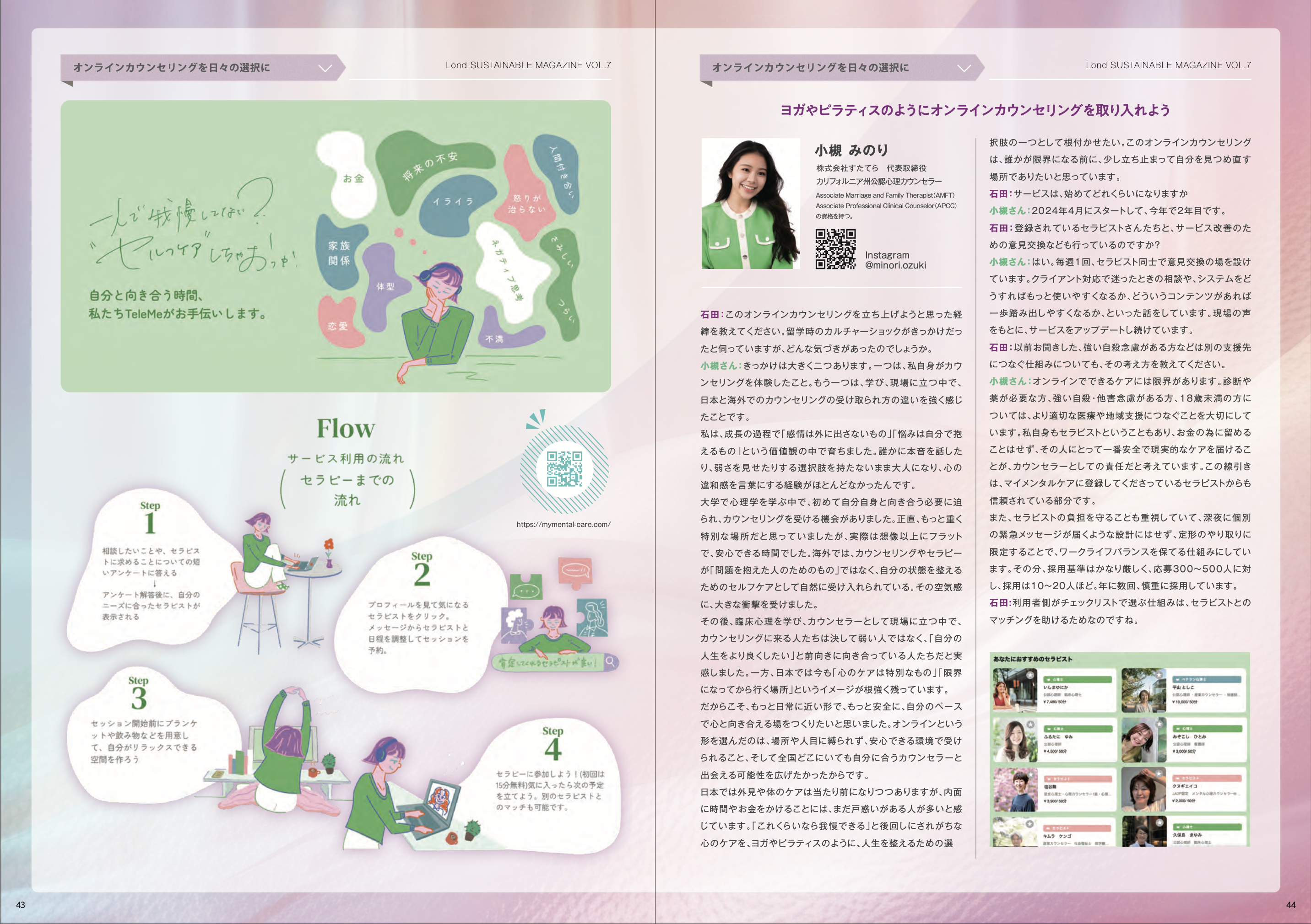 株式会社すたてら 代表取締役であり、カリフォルニア州公認心理カウンセラーの小槻みのりさんへの取材を通じて、