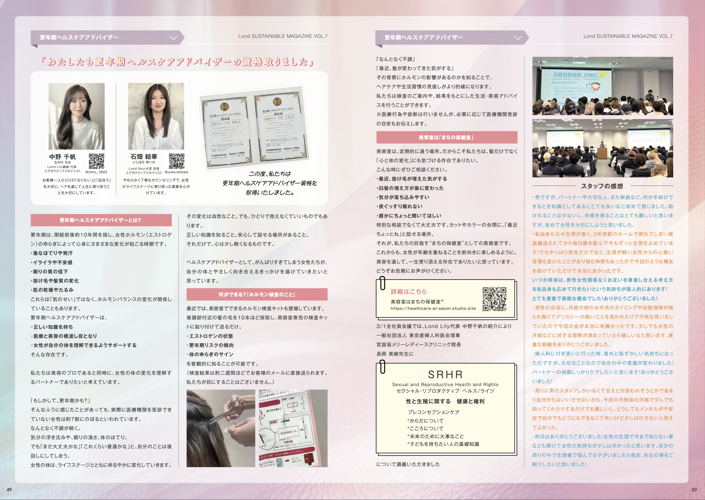 更年期に関する正しい知識を学び、日々の接客やコミュニケーションに活かすため、Lond幹部の中野 千帆と石畑 結華が更年期ヘルスケアアドバイザーの資格を取得しました。